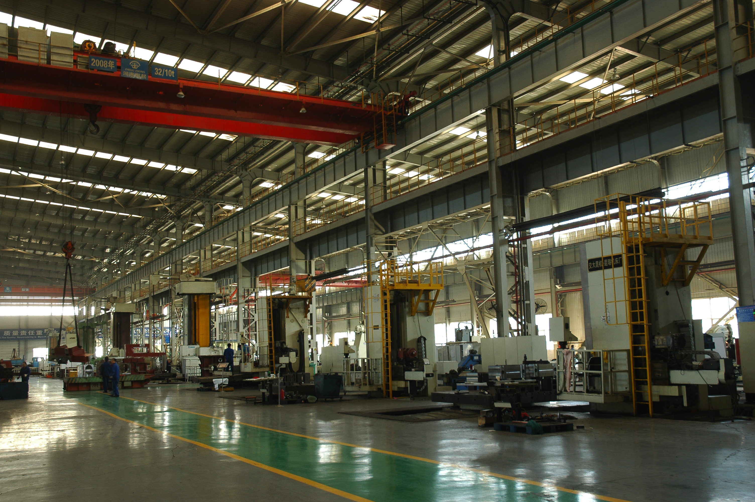 2008年10月11日,企业新区建设历时一年半,共投资8.5亿元,实现了加工设备高端化、数控化和自动化。图为冶金设备分公司大型数控镗床机组。