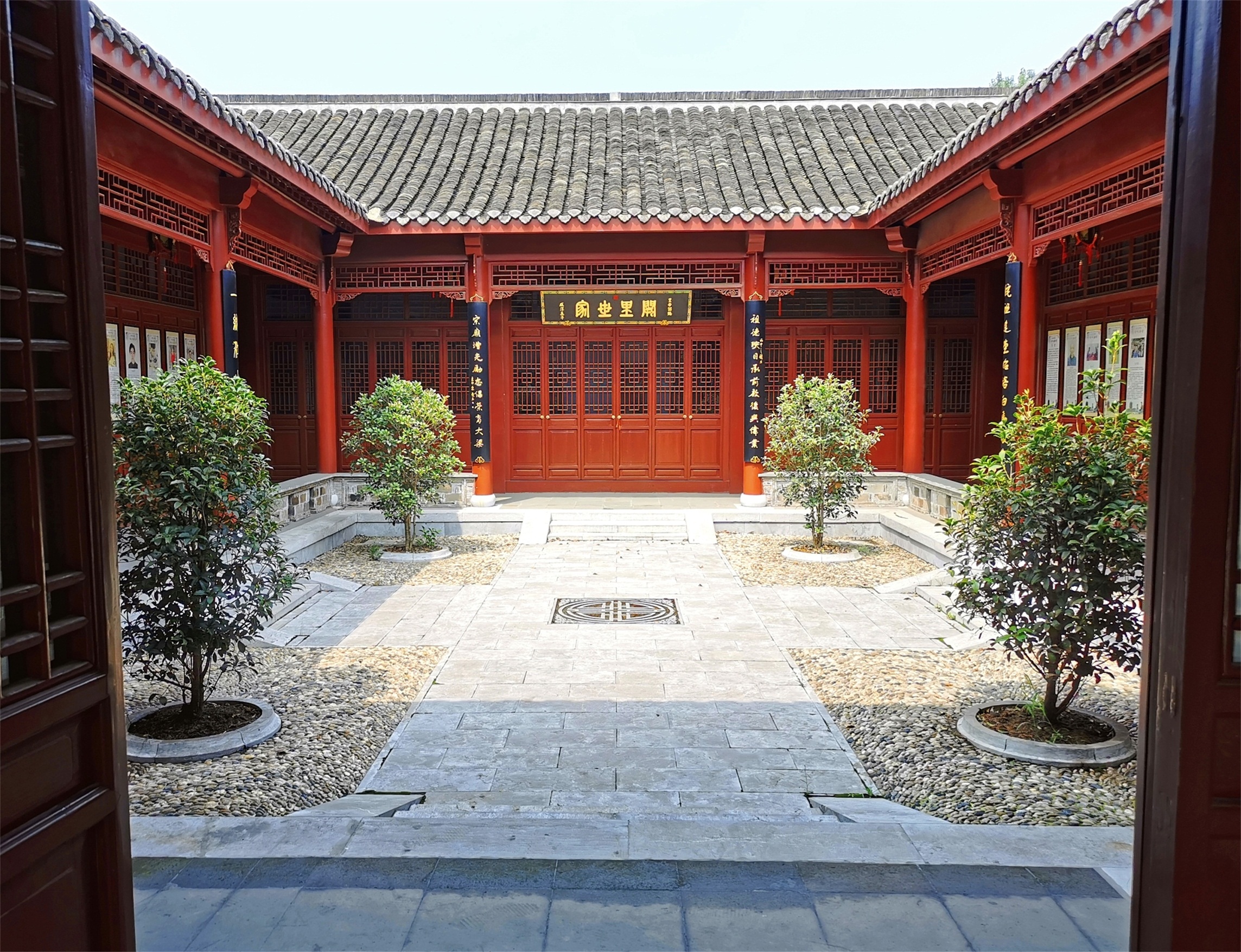 镇江市朱子文化馆占地近千平方米,采用中国传统建筑设计,砖木混构,复式叠瓦。走进院内,廊柱上镌刻着名人题字,廊壁镂空木雕,古色古香,正厅中央供朱熹坐姿汉白玉雕像,气定神闲,栩栩如生,尽显其睿智儒雅的大家风范。