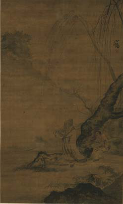 柳岸闲步图 吴伟 天津博物馆藏 纵167.8厘米 横101厘米 绢本设色