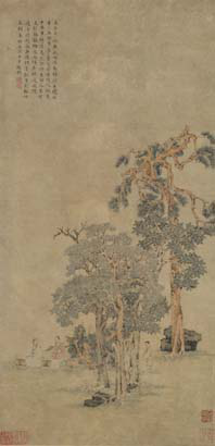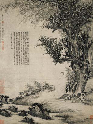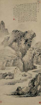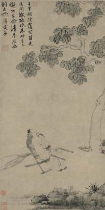 松石高士图 文徵明 天津博物馆藏 纵59.5厘米 横28.7厘米 纸本设色