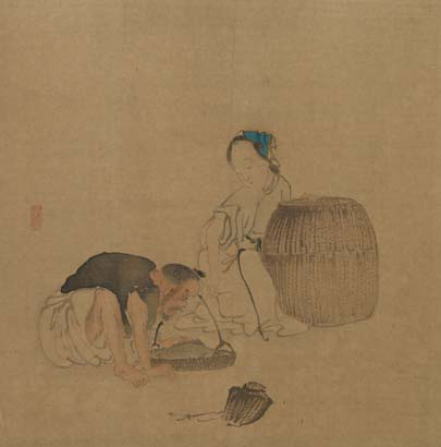 人物图册 之一 黄慎 天津博物馆藏 纵24.8厘米 横24.5厘米 绢本设色