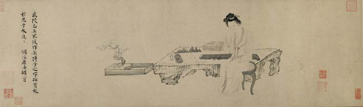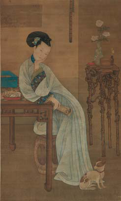 春闺倦读图 冷枚 天津博物馆藏 纵175厘米 横104厘米 绢本设色