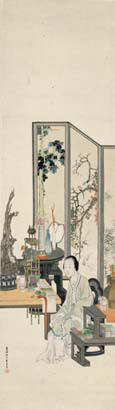 闺中礼佛图 任薰 南京博物院藏 纵114.2厘米 横32.5厘米 纸本设色