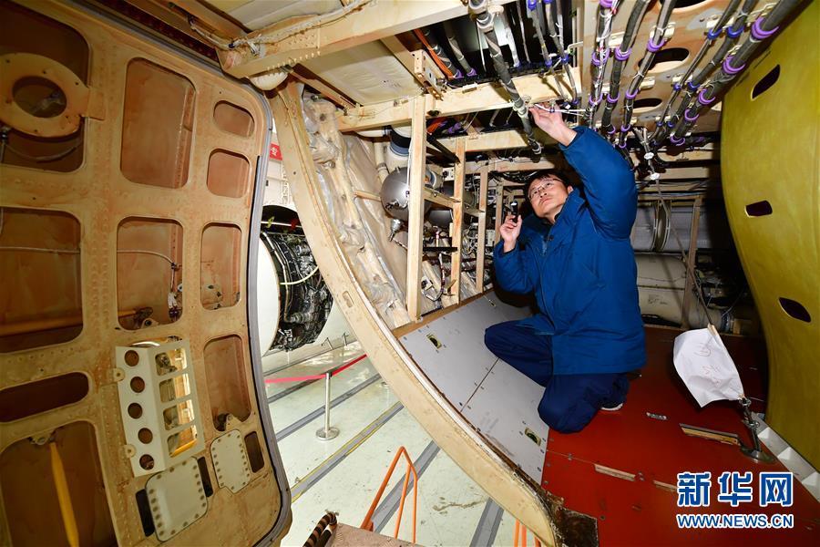 中国飞行试验研究院C919试飞团队试飞设计负责人刘静在检查加装在C919客机101架机上用于观察记录前起落架的摄像头(1月30日摄)。 新华社记者 邵瑞 摄
