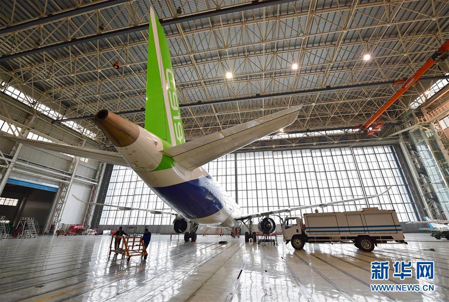 C919客机101架机停放在中国飞行试验研究院的机库内(1月30日摄)。 新华社记者 邵瑞 摄
