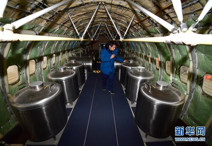 中国飞行试验研究院C919试飞团队机械中队长张宏志在C919客机101架机客舱内检查水配重系统(1月30日摄)。 新华社记者 邵瑞 摄