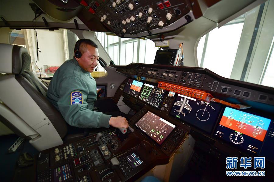 中国飞行试验研究院C919试飞团队试飞员赵明禹在C919客机101架机驾驶舱内进行调试(1月30日摄)。 新华社记者 邵瑞 摄