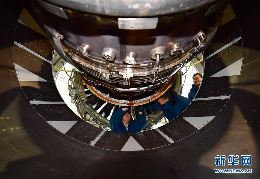 中国飞行试验研究院C919试飞团队的机械师在对C919客机101架机的发动机进行检修(1月30日摄)。 新华社记者 邵瑞 摄
