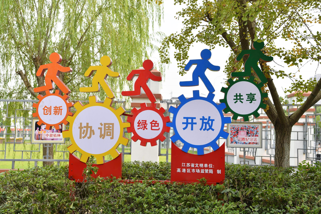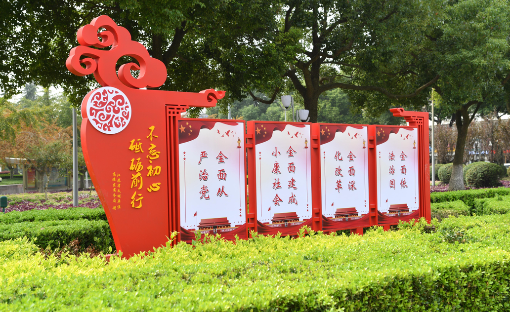 金秋十月,最美中国红。在江苏泰州高港城区的重要节点“长”出了一批造型精致美观、色泽鲜艳明亮、内容积极向上的城市小品。这些城市小品是由高港区22家文明单位主动承建。