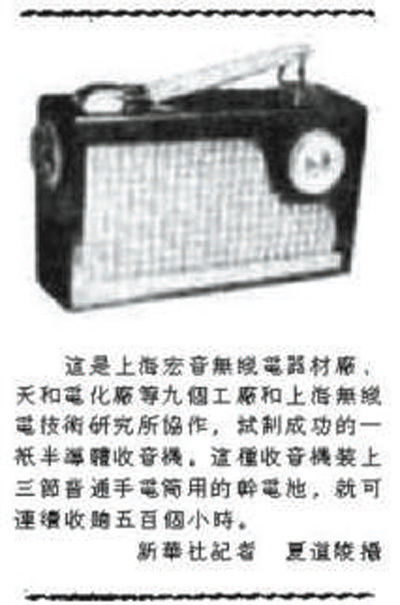 编者按:1958年3月13日,人民日报报道我国第一台半导体收音机在上海诞生。