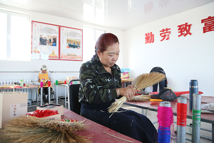 深秋时节,内蒙古赤峰市巴林左旗隆昌镇义昌隆村的笤帚苗子加工扶贫车间一片繁忙,10多名妇女正在熟练地绑扎笤帚。50岁的贫困户董艳梅算了一笔账:姐妹们每绑一把精品笤帚能挣4元钱,一天能绑25把,一个月的纯收入就是3000元。“家门口有了扶贫车间,让我们有了一份稳定的工作,还不耽误种地、照顾家,比外出打工强多了!”笤帚苗子产业是巴林左旗产业扶贫的支柱产业,如今在笤帚苗子、肉牛、肉驴三大扶贫产业的拉动下,全旗有2.2万多贫困人口拔掉穷根,过上了好日子。