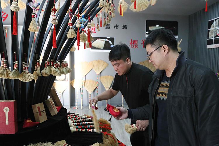义昌隆村扶贫车间开发的精品笤帚品种繁多。