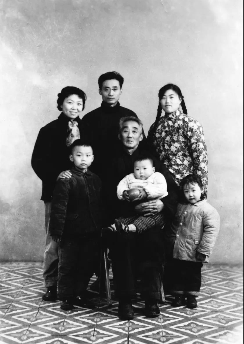 1964年居住在松花新村时一家五口和祖父(中坐者)、姑姑(后排右一)合影(前排左一为作者)