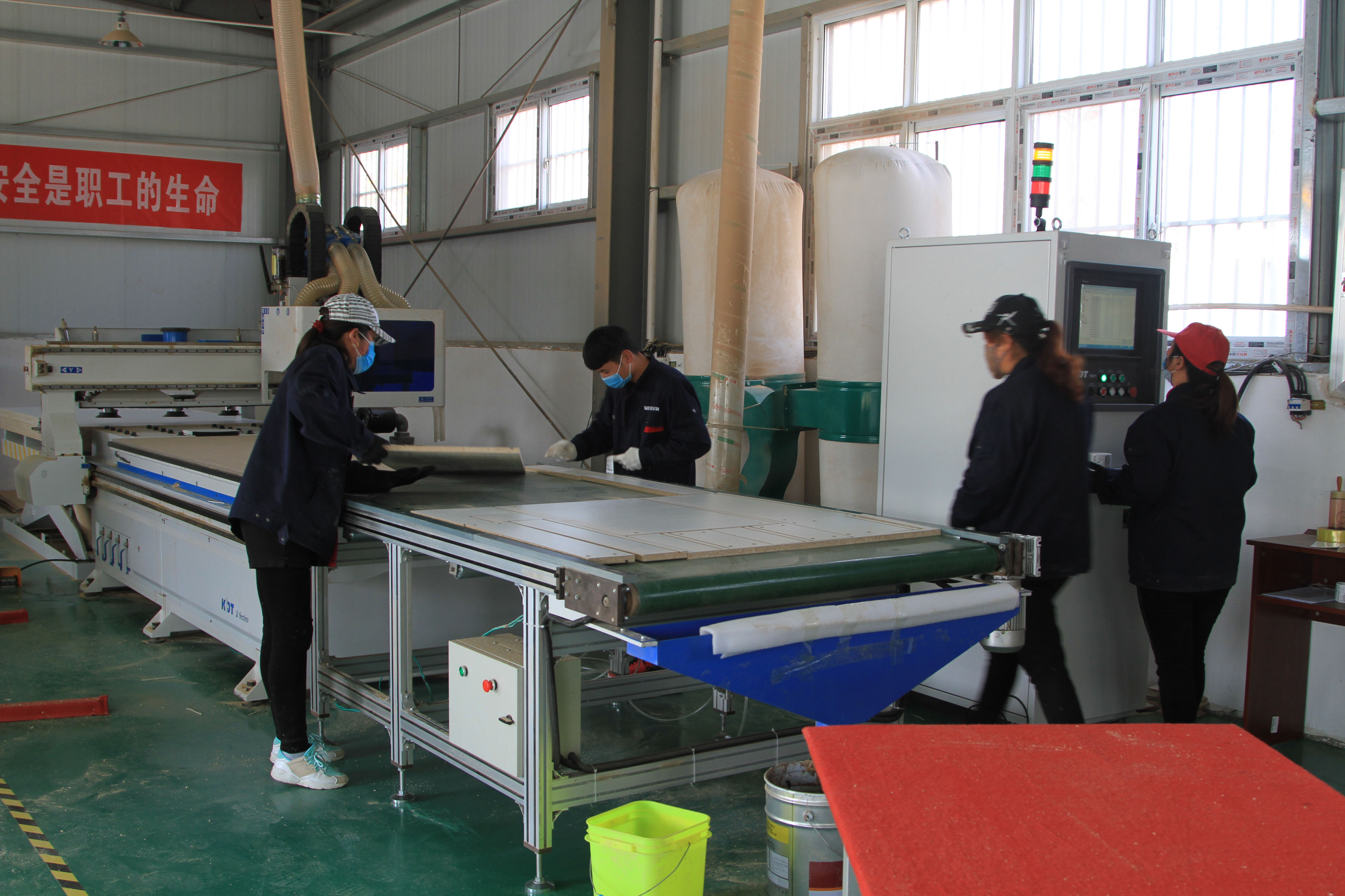 2019年12月29日,在位于河南省平顶山市叶县水寨乡太康村的上海硕匠家居有限公司(河南)生产基地内,一群工人在忙碌着——开料的、封边的、包装的。大家忙中有序、各司其职。加工车间对面是该公司的产品展厅,站在布满现代化家具的展厅,仿佛置身于“时尚达人”的家。