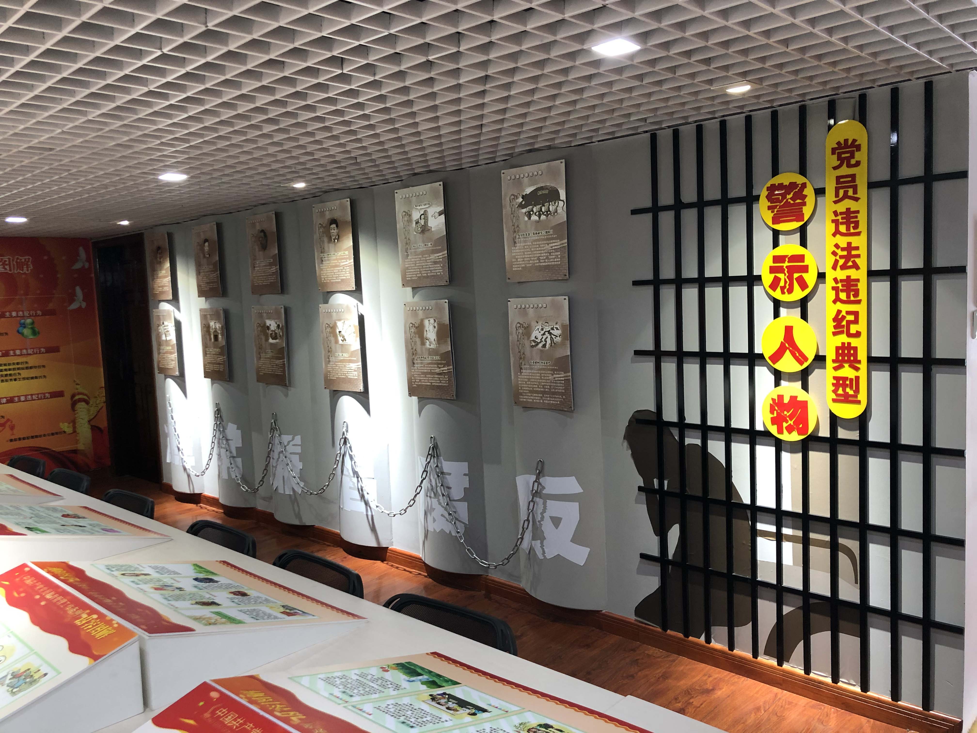 党示厅的另一面墙为警示人物展示图板,从反面对党员进行纪律教育,使党员明底线、知敬畏,常思贪欲之害,常怀律己之心。