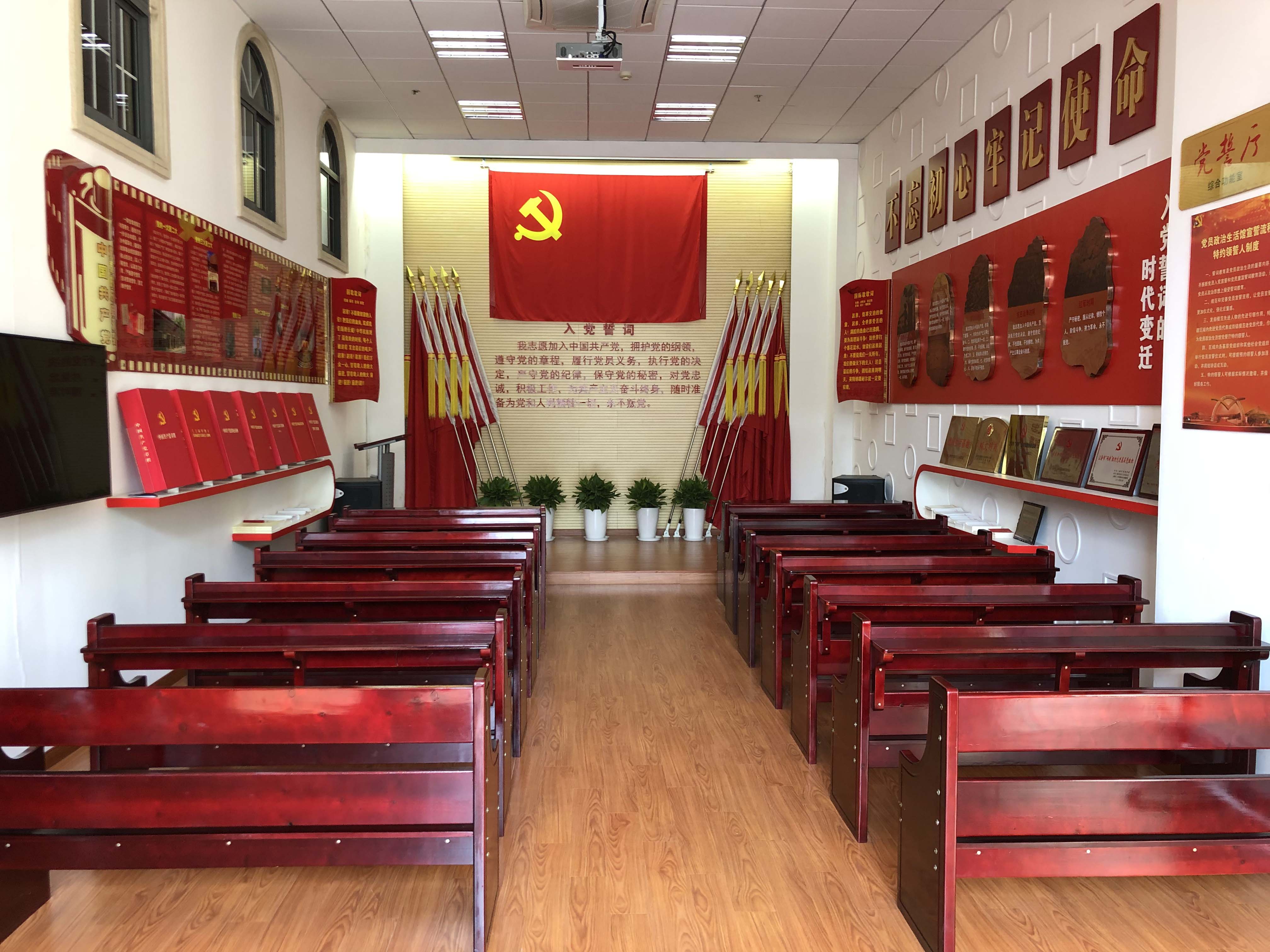 走进党员政治生活馆,首先映入眼帘的就是党誓厅。这里是党员重温入党誓词和新党员进行入党宣誓的地方,正前上方布置有鲜红的党旗和80字的誓词。左右两边上方分别展示着入党誓词的变迁和党章历史演变,既加深党员对誓词的理解和把握,又增添了党誓厅的历史厚重感。紧接着,进入的是党事厅,党事厅是党员民主议事和党员志愿者之家。