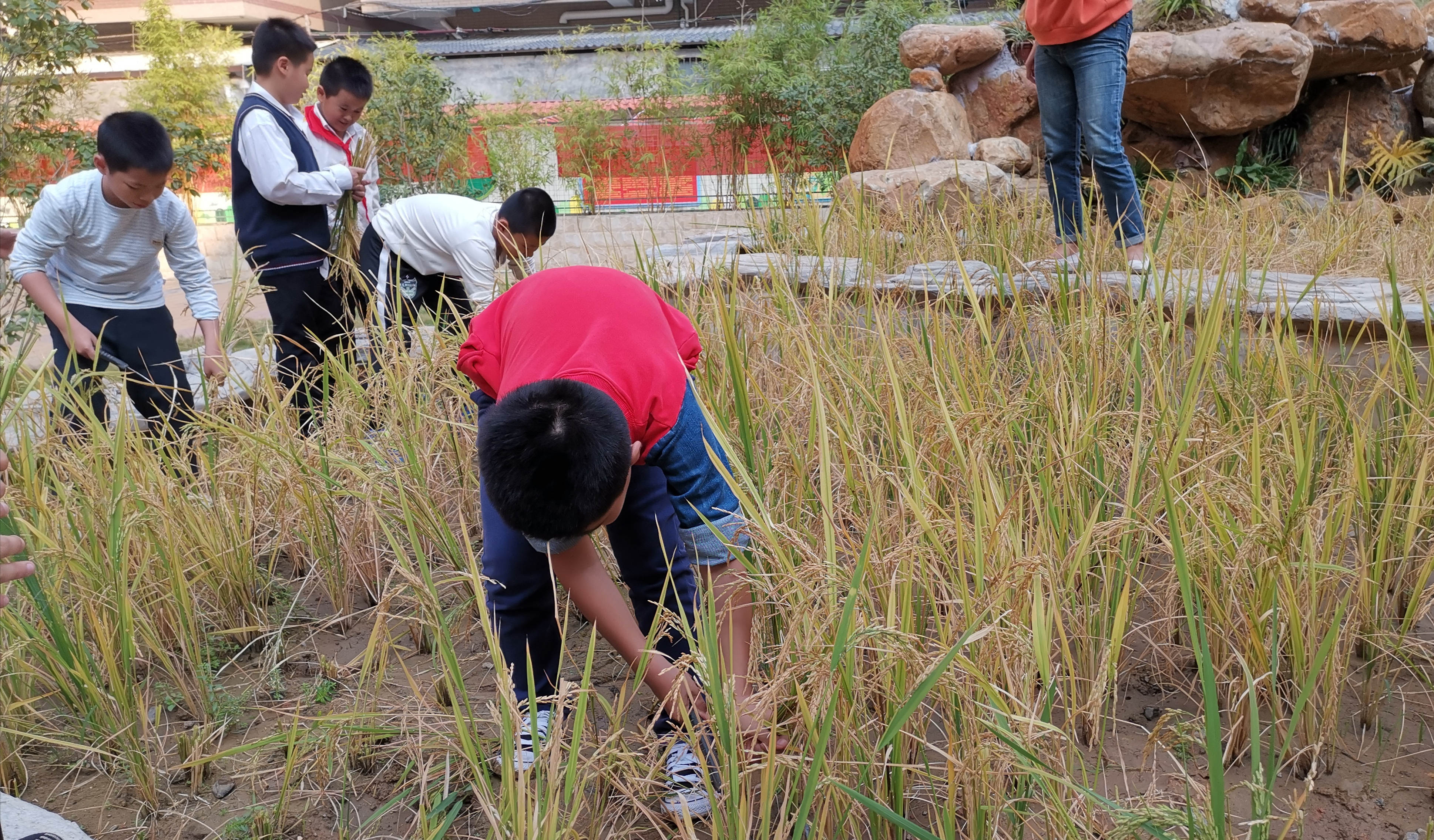 贵港市港北区港宁小学的学生亲身体验收稻谷。港北区港宁小学 供图
